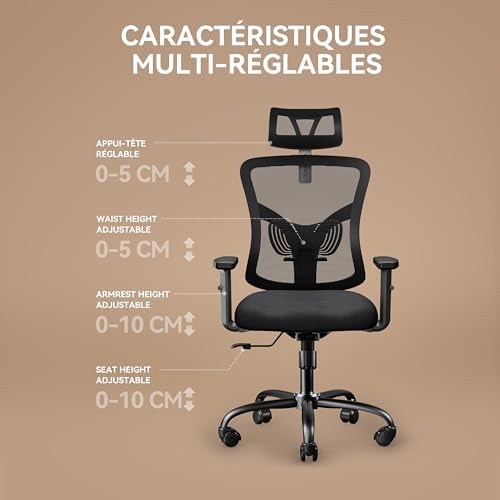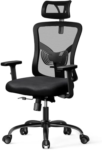 【MATERIAL DE MALLA TRANSPIRABLE】: La silla de oficina está diseñada con un respaldo y reposacabezas de malla transpirable para mantenerlo fresco y seco durante todo el día. El asiento con cojín de esponja de 3.15″ de alta densidad es suave y de apoyo, lo que le permite permanecer cómodo durante períodos más prolongados.