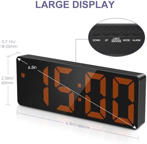 Gran pantalla LED y multifunción: el despertador digital OQIMAX dispone de una gran pantalla LED de 6,5 pulgadas, te da una impresión visual clara y cómoda. Despertador inteligente con 5 modos: modo reloj, modo de fecha, modo de temperatura, modo nocturno (encendido/apagado), modo de alarma. Los botones en la parte posterior son muy autoexplicativos, por lo que la configuración es muy fácil!