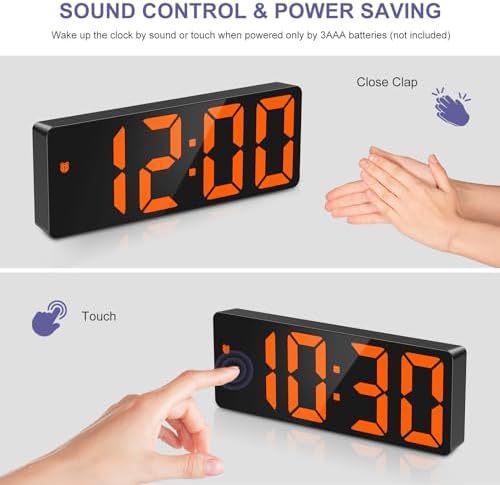 Control por voz: con la batería obtienes una función adicional: el control por voz. Esto significa que puede activar la pantalla haciendo sonidos, como aplaudir las manos, tocar la mesa o tocar el reloj. Además, el despertador LED se apaga automáticamente después de 16 segundos de inactividad y cambia al modo de ahorro de energía.