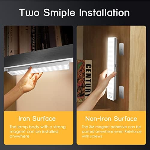 ✨[2 Métodos de Instalación] – Imán incorporado, la luces para armarios se puede conectar directamente a cualquier superficie de hierro que desee. Con cinta Magnéticas adhesiva 3M , También puedes instalarlo en cualquier superficie. Además, puede utilizar los tornillos adjuntos para reforzar el Magnéticas adhesiva 3M, sin preocuparse de que se caiga. Le permite cambiar la ubicación fácilmente.