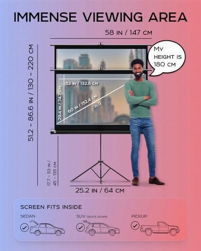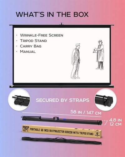 La pantalla de proyector con soporte PropVue dispone de un soporte tipo trípode con patas anchas hecho en PVC de la mejor calidad. Te permite ver películas, hacer presentaciones y jugar videojuegos como nunca antes