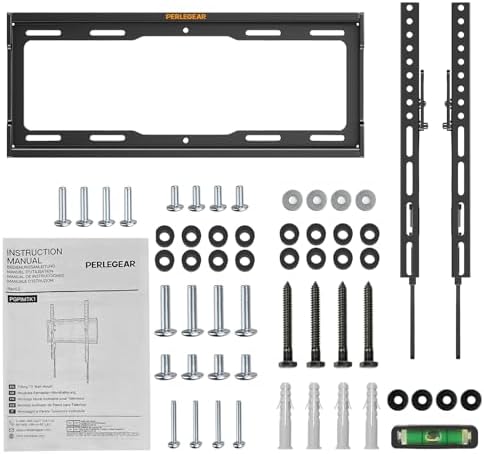 FÁCIL INSTALACIÓN: soporte TV Perlegear Viene con todas las herramientas y accesorios necesarios, nuestro soporte TV se adapta a televisores planos y curvos. Con los anclajes para hormigón incluidos, este soporte TV pared inclinable puede montar en una pared de ladrillo o de hormigón (NO lo monte solo en yeso y plástico).