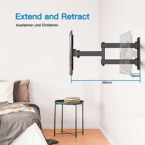 Se Extiende y Retrae para Ahorrar Espacio – Nuestro soporte de TV se puede retraer hasta 69mm de la pared en la posición inicial y también se puede extender a un máximo de 362mm de la pared, por lo que ahorra espacio valioso y le da a su casa una apariencia hermosa y ordenada.