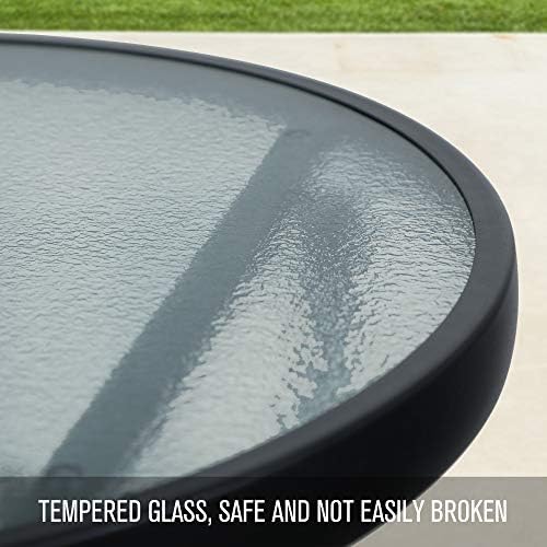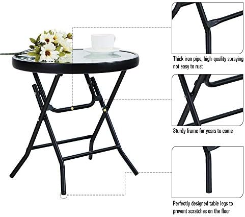 Materiales de alta calidad: el pequeño tablero de la mesa es de vidrio templado, que es seguro e irrompible. Y la superficie de vidrio templado es especialmente resistente. El revestimiento E y los marcos de metal pesados son resistentes a la corrosión y a la decoloración. El material de la pequeña mesa de patio es firme, lo suficientemente duradero, resistente a la intemperie y fácil de limpiar.