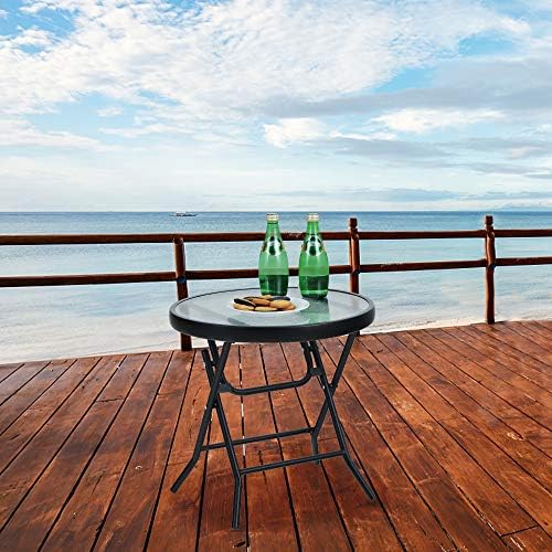 Color: TransparenteMaterial: Vidrio templado, metal acero;Dimensión de la mesa: 46L x 46W x 48H cm;Diseño: Simple, plegable;Multiuso: Perfecto para jardín, porche, interior, oficina y más.