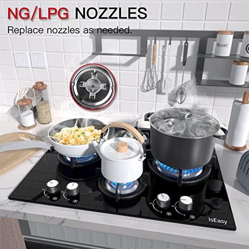 Placa de gas, encimera con 4 fuegos, cocina empotrada, gas natural/propano