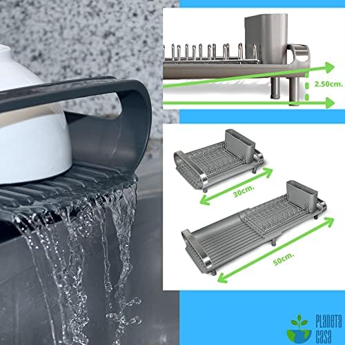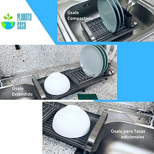 DISEÑO INTELIGENTE: Este escurreplatos extensible y compacto tiene capacidad para secar hasta 9 platos, vasos, cubiertos, y más elementos. Especial para familia de 2, 3 o incluso 4 personas. Es un perfecto secaplatos para encimera, escurridor para fregadero y armarios pequeños. Especial pisos y apartamentos pequeños.