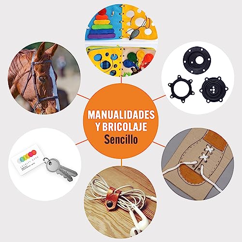 🌞 ILUMINA EL MUNDO CON TU TALENTO Y HABILIDADES: Múltiples usos. 6 tamaños de orificios. Genial para manualidades, hobbies, bricolaje. La placa extra grande permite una mayor estabilidad y más control cuando se perfore a través de cuero, plástico, tela, cartón, goma, poliuretano, tejidos, seda y muchos otros materiales.