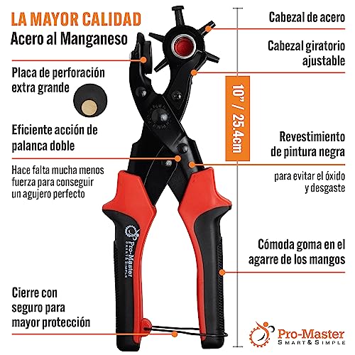 💪 ⏱ VAS MÁS LENTO, FRUSTRADO Y ESTRESADO los momentos en que necesitabas añadir agujeros extra son cosa del pasado. Pasarás mucho menos tiempo haciéndolos y mucho más tiempo disfrutando de tus resultados geniales. No necesitas mucha fuerza en las manos porque su palanca doble elimina la fatiga y estás protegido ante el dolor de manos o muñecas. Incluso si tienes artritis en tus manos, serás capaz de agarrar y apretar lo suficiente para hacer los agujeros sin problema alguno.