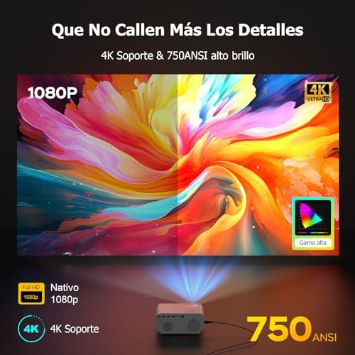 Proyector 4K 【Autoajuste Sistema】 Proyector 750ANSI Full HD 1080P Nativo, Jimveo Proyector WiFi 6 Bluetooth 4K Soporte Función Zoom Cine en Casa para Movil/iOS/Android/TV Stick/HDMI USB