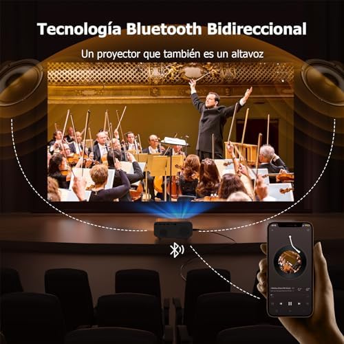 【WiFi6 De Doble Banda & Bluetooth 5.2 Bidireccional】El proyector WiFi Bluetooth J61 está equipado con WiFi6 de doble banda 2.4G/5G, que tiene una velocidad de pico de red más alta que el WiFi5, lo que permite ver videos, jugar juegos y tener una imagen fluida sin retrasos. El chip Bluetooth 5.2 bidireccional se combina con un altavoz de alta fidelidad de 8W para crear un campo de sonido envolvente inteligente, admitiendo la conexión en cascada de dispositivos Bluetooth. Se puede utilizar como altavoz Bluetooth cuando no se proyecta, cubriendo fácilmente un área de 200 metros cuadrados. Le brinda una experiencia audiovisual revolucionaria y diferente.