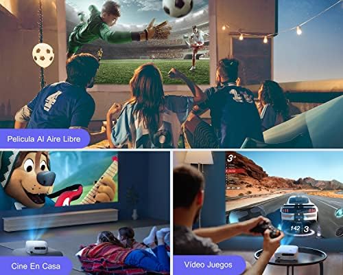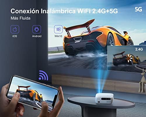 Gracias al WiFi de doble banda 2.4G + 5G, este proyector wifi bluetooth se puede conectar rápidamente a un smartphone iOS/Android o al ordenador, puedes jugar, ver películas y ver partidos de fútbol en una pantalla grande con mayor facilidad.
