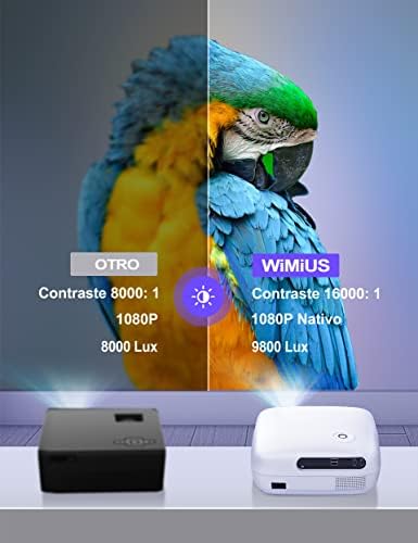 Este WiMiUS K7 proyector wifi bluetooth full hd 1080p presenta un brillo de 16000 lúmenes, que es un 40% más alto que otros proyectores, lo que satisface más necesidades de visualización. La calidad de la imagen se mejora en un 50%, y con una serie de tecnologías de mejora del color, la gama de colores supera el 99%, con una relación de contraste de 20000:1, presentando una imagen nítida visible en su totalidad, con un nivel de detalle más claro, restaurando la imagen rea y brindando un fuerte impacto visual y una fiesta visual.