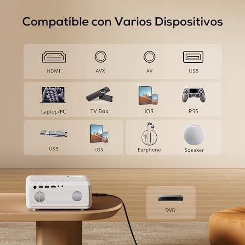 Debido a las restricciones de copyright HDCP, este proyector no puede reproducir vídeos de plataformas de vídeo con copyright (Netflix, Prime Video, Disney+, etc.) directamente desde tu smartphone, así que conecta tu Fire Stick/box, Chromecast o portátil para reproducir vídeos a través de HDMI. (Fire Stick y Chromecast no incluidos, se requiere compra adicional).