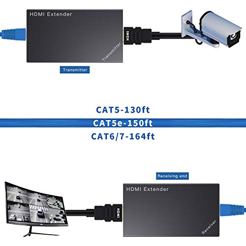 HDMI sobre Ethernet, transmisión de 1080P de 164 pies: soporta resolución de hasta 1080P a 60Hz y disfrute visual 3D. Cumple con la norma HDMI 1.3. Distancia de hasta 164 pies (50 m) sobre un solo cable Cat6/Cat7 (Cat5e para 150 pies, cat5 para 150 pies). (Recomendamos utilizar cable de alto rendimiento para garantizar un rendimiento fiable).