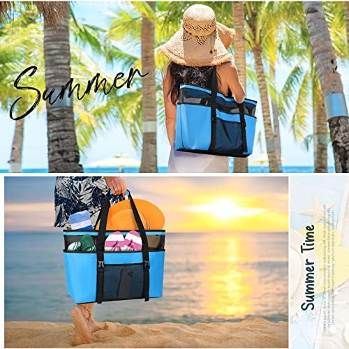 【Multi-Pocket Design】: Esta bolsa playa tiene 7 bolsillos exteriores, 1 compartimento principal grande y 1 bolsillo interior pequeño. Hay mucho espacio para su botella de agua, gafas de sol, chanclas, paraguas y objetos de valor. La bolsa de playa tiene un clip en la parte delantera para sujetar una esterilla de playa, esterilla de yoga, etc.