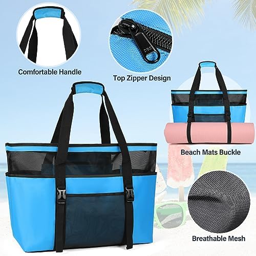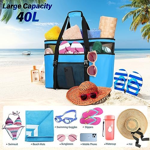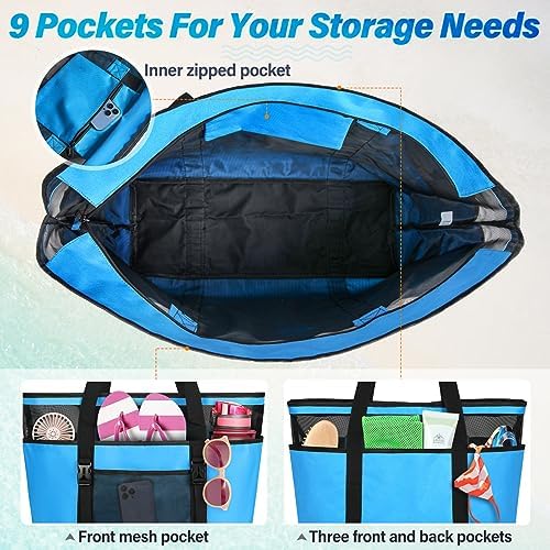 【Materiales de Alta Calidad】: La bolsa playa mujer está hecha de tela de malla oxford de alta calidad con un diseño único de doble capa. Aumenta la transpirabilidad y protege eficazmente su privacidad. La cremallera lisa puede cerrar la bolsa playa grande xxl familiar.