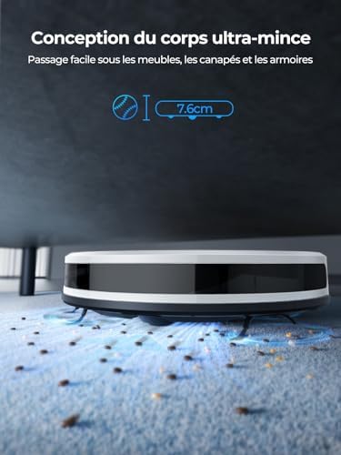 💿【7.6cm Ultra Delgado】Con un cuerpo de sólo 7.6cm, el Aspirador Robótico Evol 3s es más delgado y ligero que el mismo robot giroscópico del mercado. Esto le permite moverse libremente por su casa, meterse debajo de muebles como sofás y armarios ¡y limpiar los residuos más profundos!