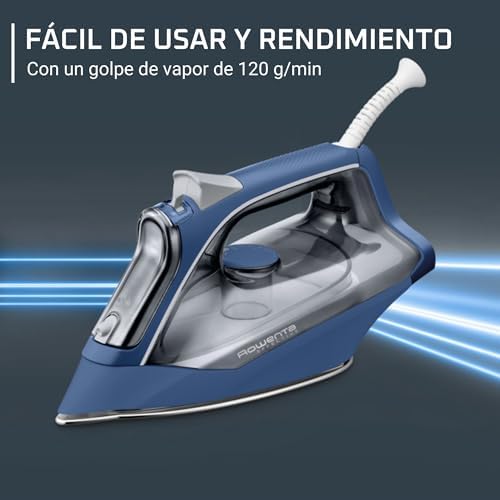 Plancha de vapor de 2400 W de potencia con potente golpe de vapor de 120 g/min que elimina las arrugas en telas gruesas y pliegues rebeldes de forma fácil y salida de vapor continuo de 40 g/min