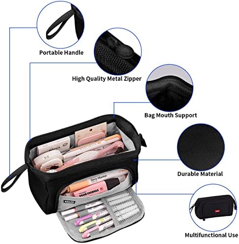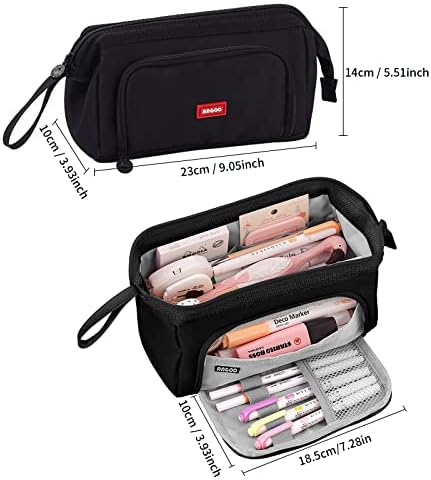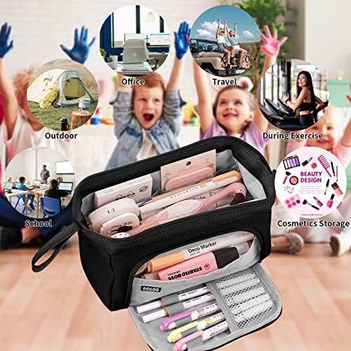 Sciphylia Estuche Escolar Estuche de Lápices de Gran Capacidad con Asa Estuche Escolar Grande para Niña Niño Organizador de Suministros Escolares de Papelería de Oficina Negro Oscuro