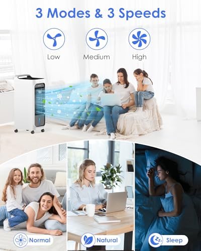 3 modos y 3 velocidades: el aire acondicionado portátil ofrece 3 modos diferentes (normal, natural y sueño) y 3 velocidades de ventilador ajustables (alta, media y baja). Esto le permite personalizar fácilmente el flujo de aire y la experiencia de enfriamiento para satisfacer sus necesidades personales específicas. El motor de alta eficiencia garantiza una refrigeración rápida del aire para la máxima relajación y comodidad.