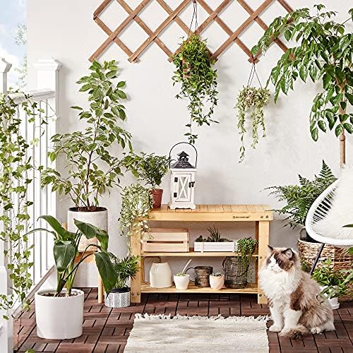 Estable y robusto: la parte superior del banco resistente hecha de tablón de bambú natural con patrones de rayas maximiza la estabilidad y soporta hasta 120 kg