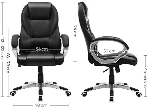 Qué hay en la caja: Una silla de oficina de SONGMICS con ruedas de poliuretano, que es adecuada para casi todos los suelo (utiliza una alfombra de protección en suelos laminados y de parqué). Ya sea para trabajar o para relajarse, siempre proporciona un soporte estable