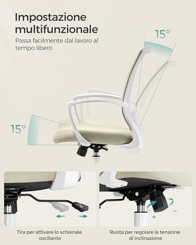 [Para una posición sana] Puedes ajustar esta silla de oficina a la altura correcta mientras trabaja; puedes activar el modo de inclinación libre de la silla después de trabajar mucho tiempo, inclinándola 15° para estirar tu cuerpo y relajar tu mente