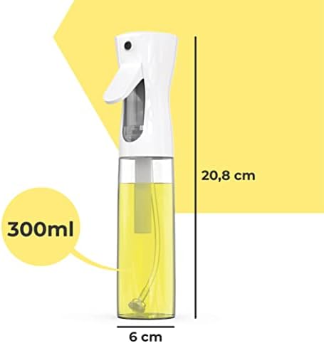 300 ML CAPACIDAD: El pulverizador de aceite tiene una capacidad de 300 ml lo que supone no tener que rellenar la botella cada 2×3. Además, el spray aceite de cocina tiene una válvula al fondo de succiona el vinagre / aceite / limón.