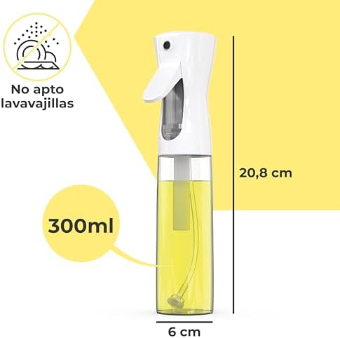 VÁLVULA DE SUCCIÓN POLIVALENTE: ¿Cansado de que los sprays de aceite no funcionen cuando aún queda aceite? Gracias a la nueva tecnología de válvula polivalente conseguimos terminar el aceite del pulverizador hasta casi la última gota.. Por ser un producto delicado, No es apto para lavavajillas. Se recomienda lavarlo a mano y con agua a baja temperatura.