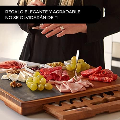 UN REGALO ESPECIAL PARA ESA PERSONA ESPECIAL. Con nuestra set premium de 17 piezas de tabla de queso y embutidos con juego de cuchillos, tenedores, cuencos y piezas de pizarra, lograrás que cualquier momento sea memorable: regalo de boda, de Navidad, para el día de San Valentín, el Día de la Madre o Padre, regalos para parejas, regalo de inauguración de nueva casa o de aniversario.