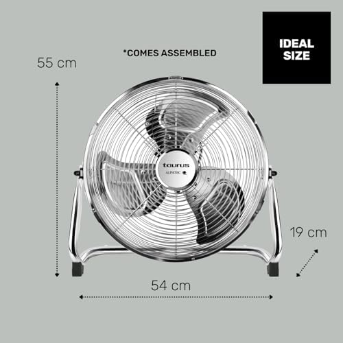 Ventilador de diseño elegante con acabados metálicos que garantizan una total durabilidad y robustez. Sin necesidad de montaje, viene montado en la caja.