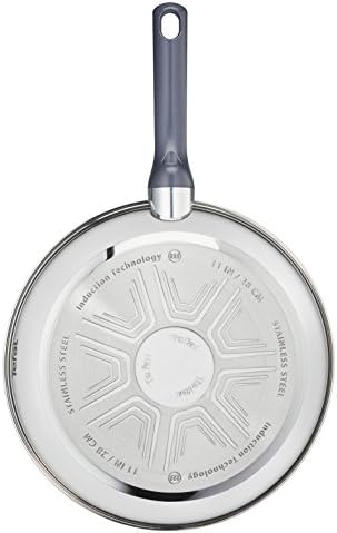 Thermospot: el punto central ayuda al control de la temperatura, cambia de color cuando la sartén alcanza 180ºC, adecuado para cocinar la mayoría de platos