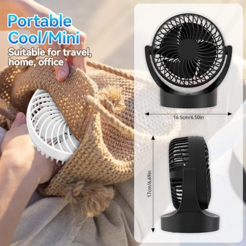 【4-10hrs Tiempo de Trabajo y Tamaño Compacto】: El ventilador portátil con batería incorporada 3000mAh mantiene para 4-10h de trabajo, conveniente para el aire libre. El ventilador de oficina USB plug-and-play se puede adaptar al banco de energía, portátil, adaptador de coche y así sucesivamente. Este es un mini ventilador, mide 16.5 *17 cm (6.5″ *6.69″), 320g, ligero y ahorra espacio.