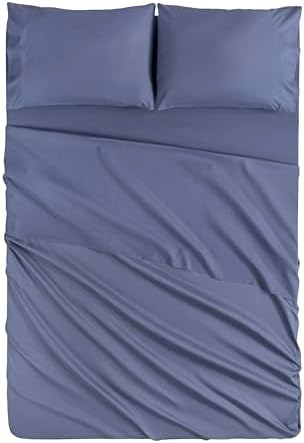 El juego de sábanas de cama de 4 piezas, incluye 1 sábana encimera, 1 sábana bajera ajustable y 2 fundas de almohada de 50×80 cm con cierre envolvente de solapa.