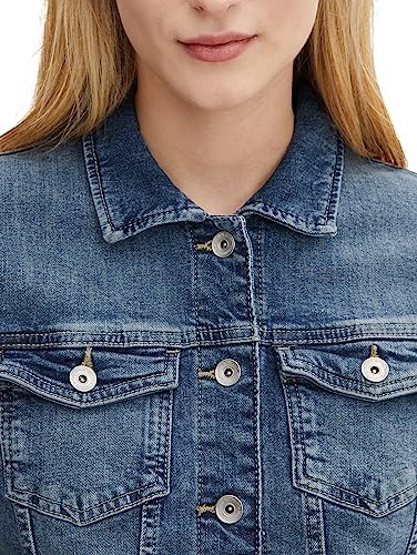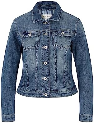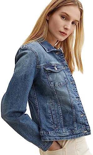 Cazadora vaquera con dos bolsillos de parche en el pecho y dos bolsillos de ribete en la parte delantera. Con costuras divisorias de manga larga con cuello y lengüeta con botón para cerrar. Ajuste regular con cinturilla ajustable en la espalda gracias a los botones de presión. Confeccionado en denim de textura fina.
