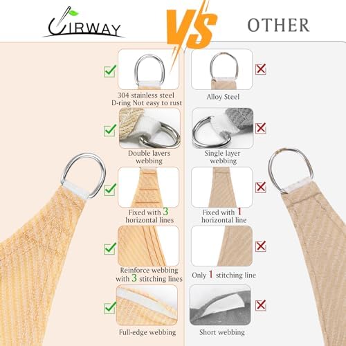 🌻【Calidad del material y diseño razonable】 Fabricado en polietileno de alta densidad 100% 185 g/m² (HDPE). Hay costuras sólidas y anillos en D de acero inoxidable duradero en cada esquina, y los bordes están doblados (no rectos) para aumentar la tensión y evitar la flacidez.