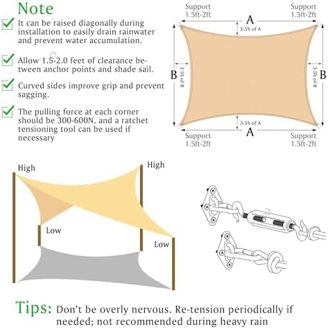 🌻【Accesorios completos y fácil instalación】 Incluye un toldo de jardín de 3 x 4 m rectángulo (anillos en cada borde están hechos de acero inoxidable 304), 3 cuerdas resistentes (2 m) e instrucciones (idioma español no garantizado). Deje entre el punto de anclaje y el toldo 45-60cm juego para instalar hardware/cuerdas o ganchos.