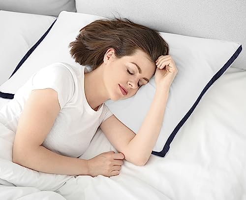 ALMOHADAS GUSSET – Disfrute de una cómoda noche de sueño con este pack de 2 almohadas blancas de 40 x 70 cm con ribete blanc y tira Azul Marino en el centro.