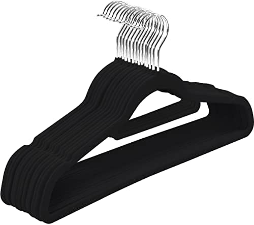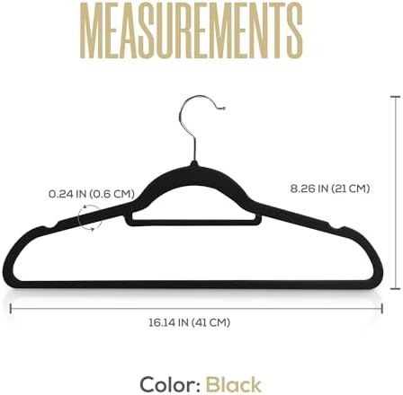Nuestras perchas de terciopelo premium vienen en un juego de 50 en un impresionante color negro para dar a su armario un aspecto elegante y sofisticado. Su diseño elegante y delgado maximiza el espacio en su armario, permitiendo más espacio entre las prendas dejándolas libres de arrugas. La estructura ultrafina de nuestra percha de terciopelo es ligera pero lo suficientemente fuerte como para aguantar 5 kilos.