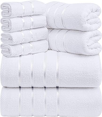 JUEGO DE 8 toallas – Incluye 2 toallas de baño, cada una de 69 x 137 cm; 2 toallas de mano, cada una de 41 x 71 cm y 4 toallas de baño, cada una de 30 x 30 cm