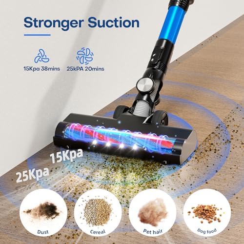 【Potente Succión, Motor Sin Escobillas】¡Dile adiós a la suciedad y los pelos de mascotas obstinados! Aspiradora sin cable presume de un motor sin escobillas de 160W y 2 modos de limpieza, ofreciendo una impresionante potencia de succión de 25Kpa.