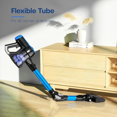【Flexible y Ahorro de Espacio】Con un mango flexible para una limpieza versátil y un soporte de montaje en pared para un almacenamiento fácil, aspirador escoba ofrece tanto flexibilidad como conveniencia para ahorrar espacio.