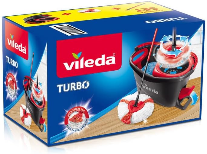 Be the first to review “Vileda Turbo Juego de cubo de fregona para suelos giratoria con pedal – Mango telescópico 85 – 123 cm – Cabezal de microfibra 2 en 1 – Love it clean – Embalaje sostenible”
